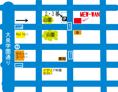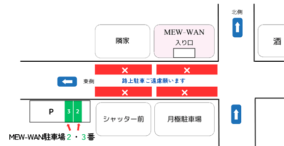 店舗東側向かいの駐車場2番もしくは3番をご利用ください。