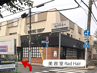 | ↑左手に美容室Rad Hair さんが見えてきます。ここを左折します。 (信号がなく桜の木で少々分かりずらいですのでお気お付けください) |