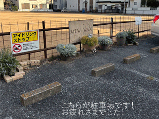 | ↑お疲れ様でした! 2、3番がMEW-WANの駐車場です。 |