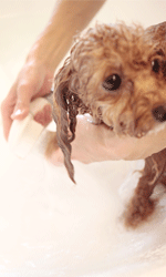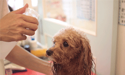 わんこの皮膚層は非常に薄い為(人間の1/6)、一度のシャンプーでゴシゴシこすってきれいにしようとせず、メレンゲ状に泡立てたシャンプー剤を身体全体に塗布する感覚で優しくマッサージします。