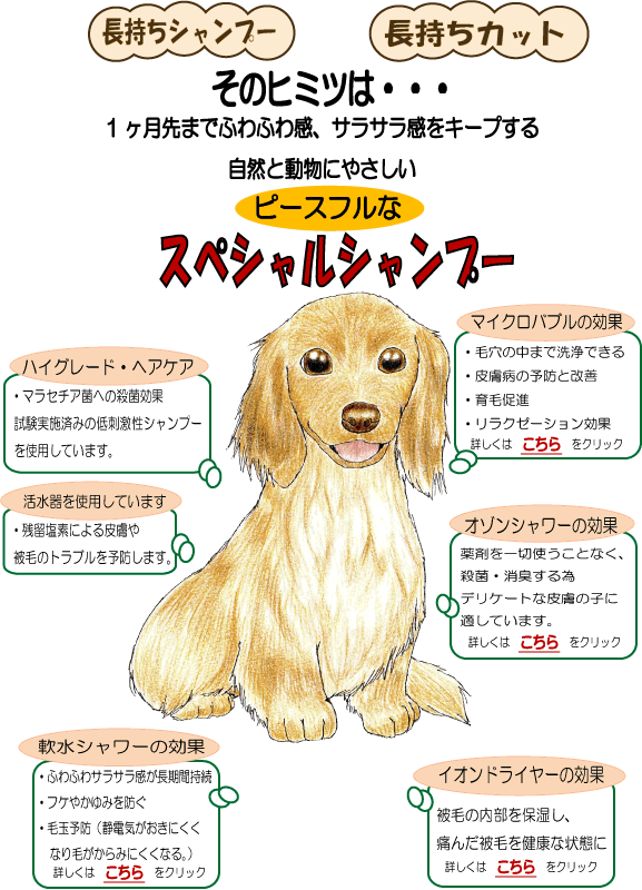 軟水を使用した場合、皮膚や被毛に石けんカスが残らず、皮膚に吸着したシャンプー剤の脱着速度(すずぎの速さ)も水道水にくらべて速い為、わんこの負担を大幅に軽減する事が出来ます。